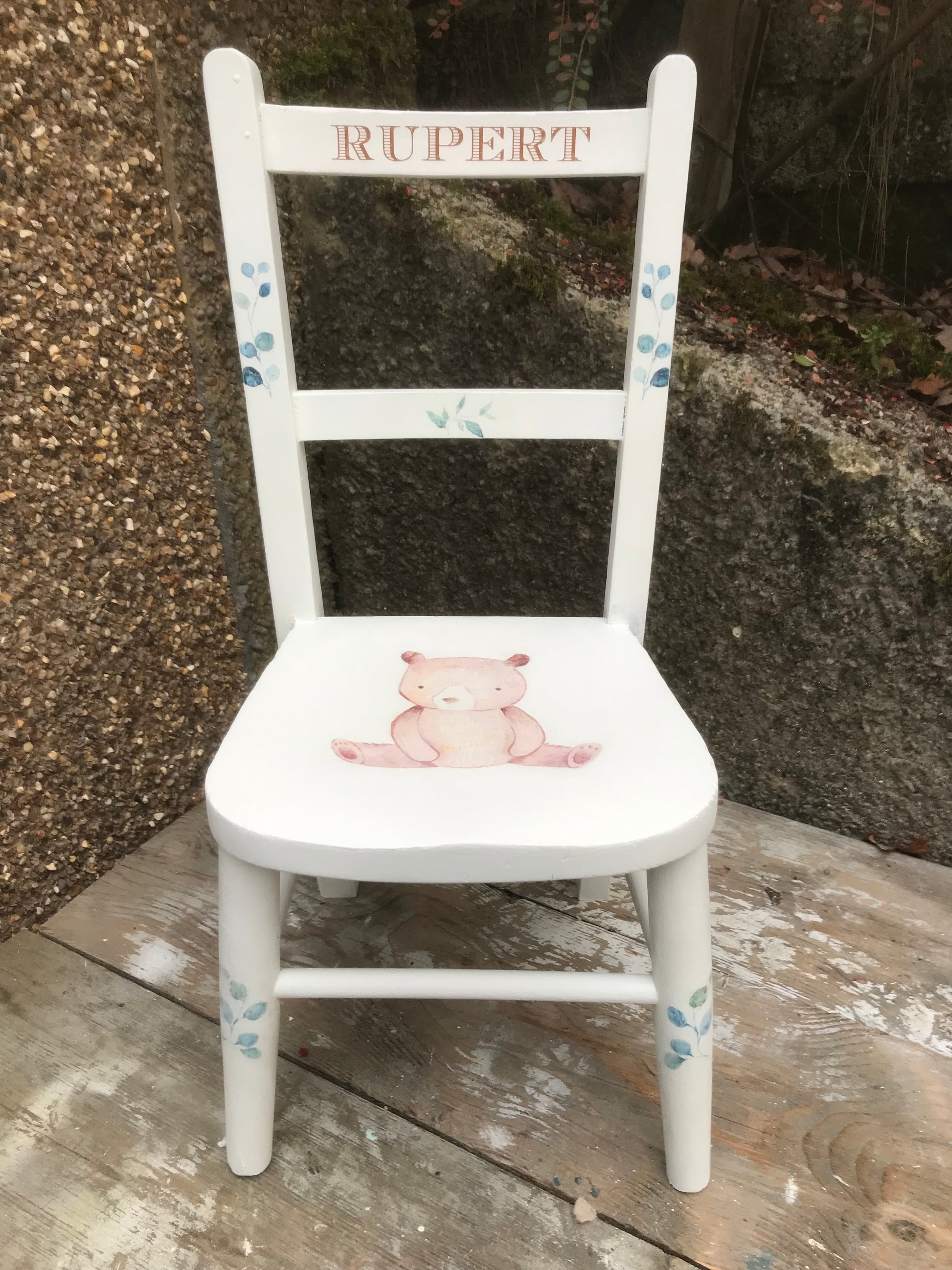 Child's personalised vintage wooden chair with your child's name upcycled and custom made to order - little bear theme.