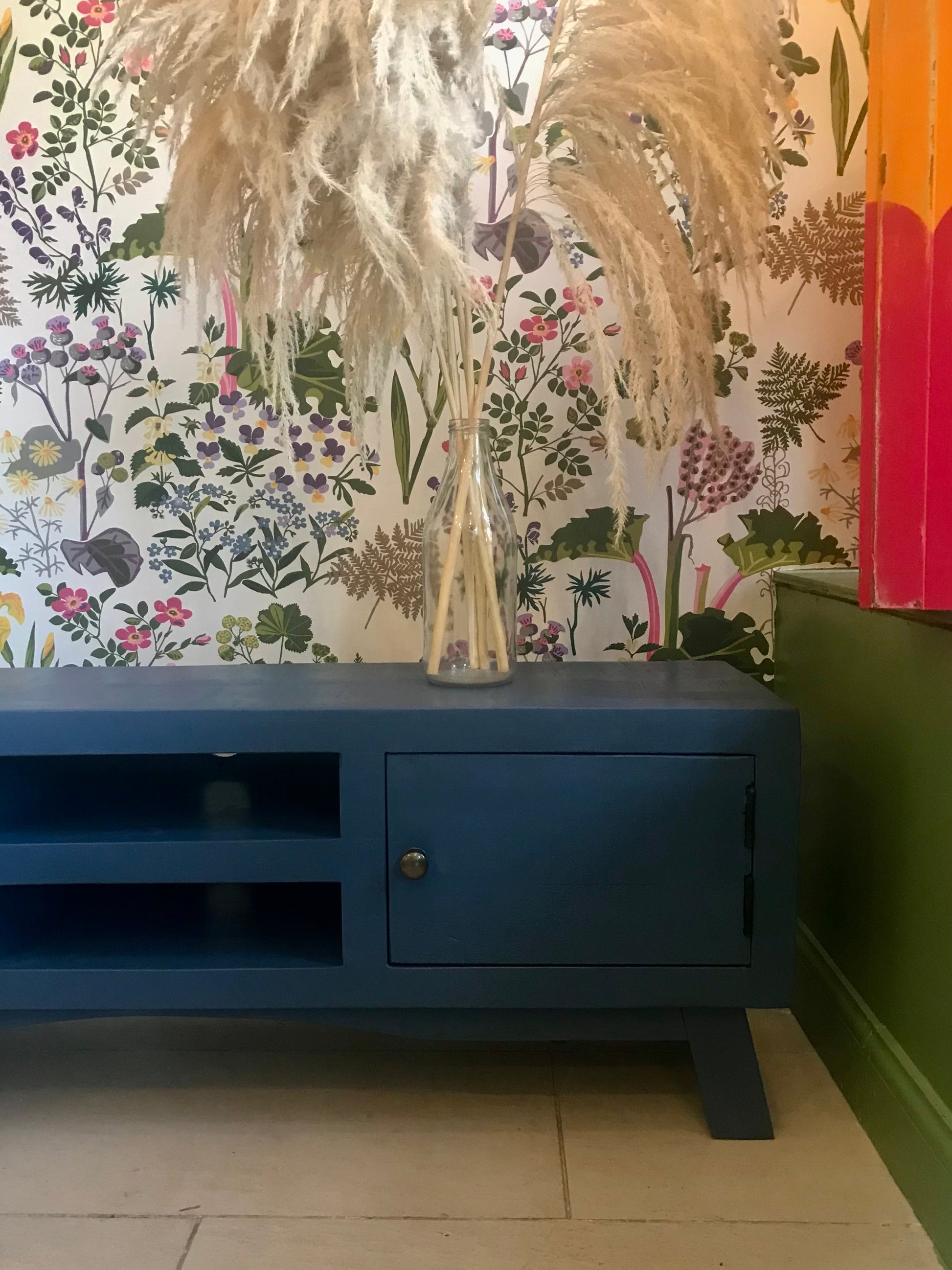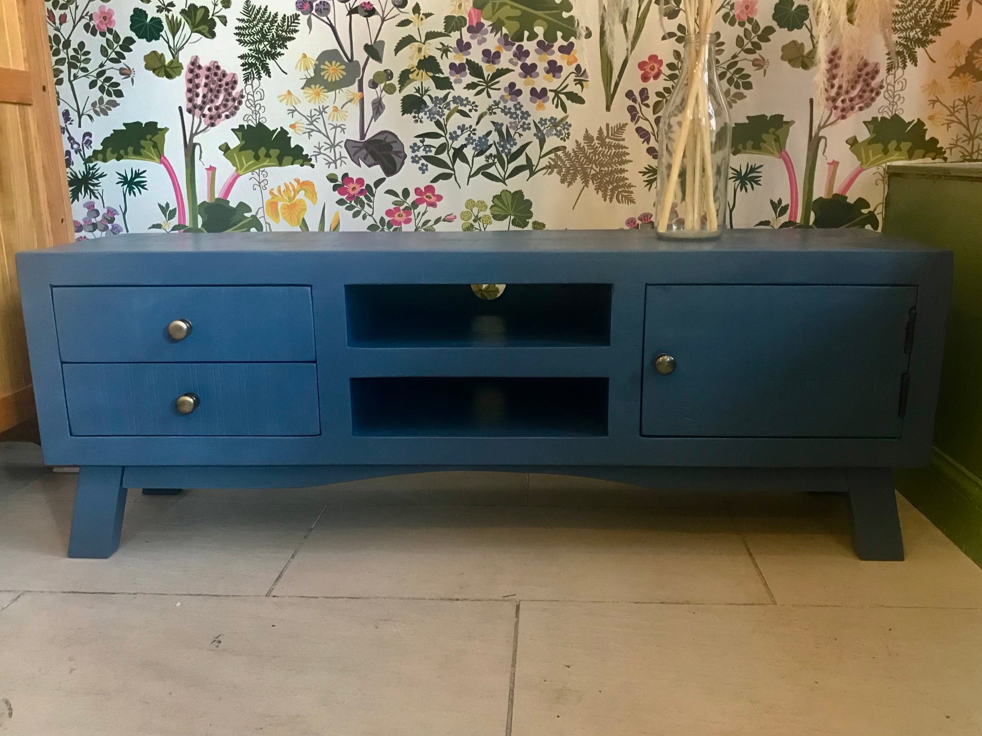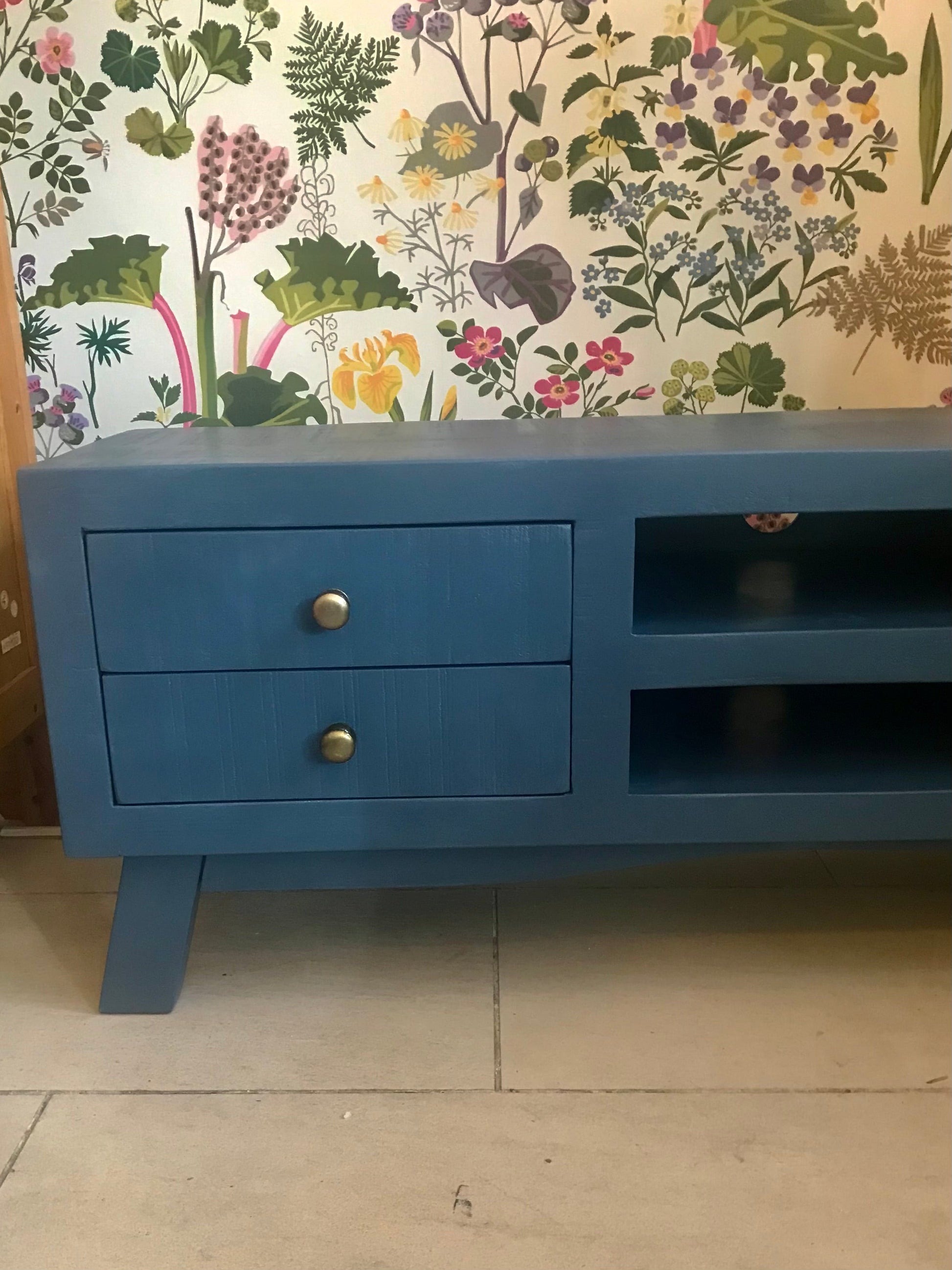 Painted mango wood TV unit 110cm × 30cm ×40 cm Mango Wood painted in your choice of colour. Please contact me with you postcode for a shipping quote