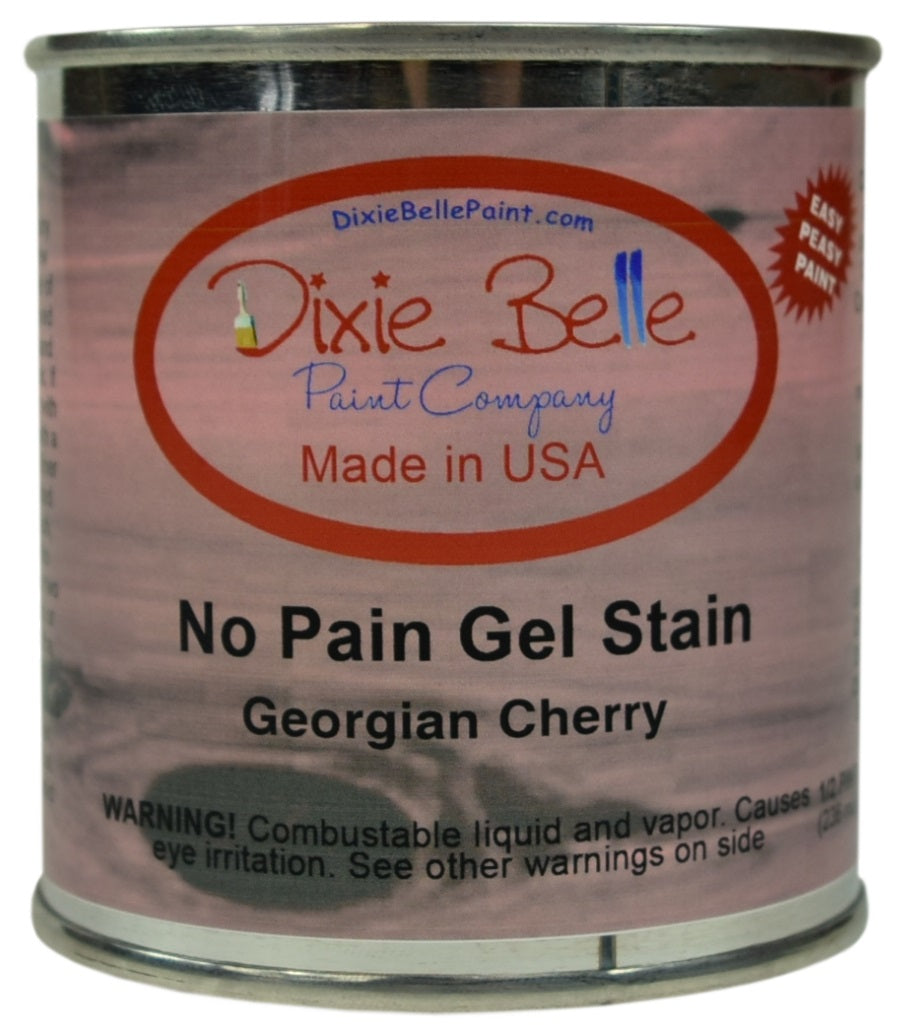 No Pain Gel Stain is an oil-based gel stain that provides deep and rich coverage. It is easy peasy to apply! Available in: Georgian Cherry, Weathered Gray, Colonial Black.