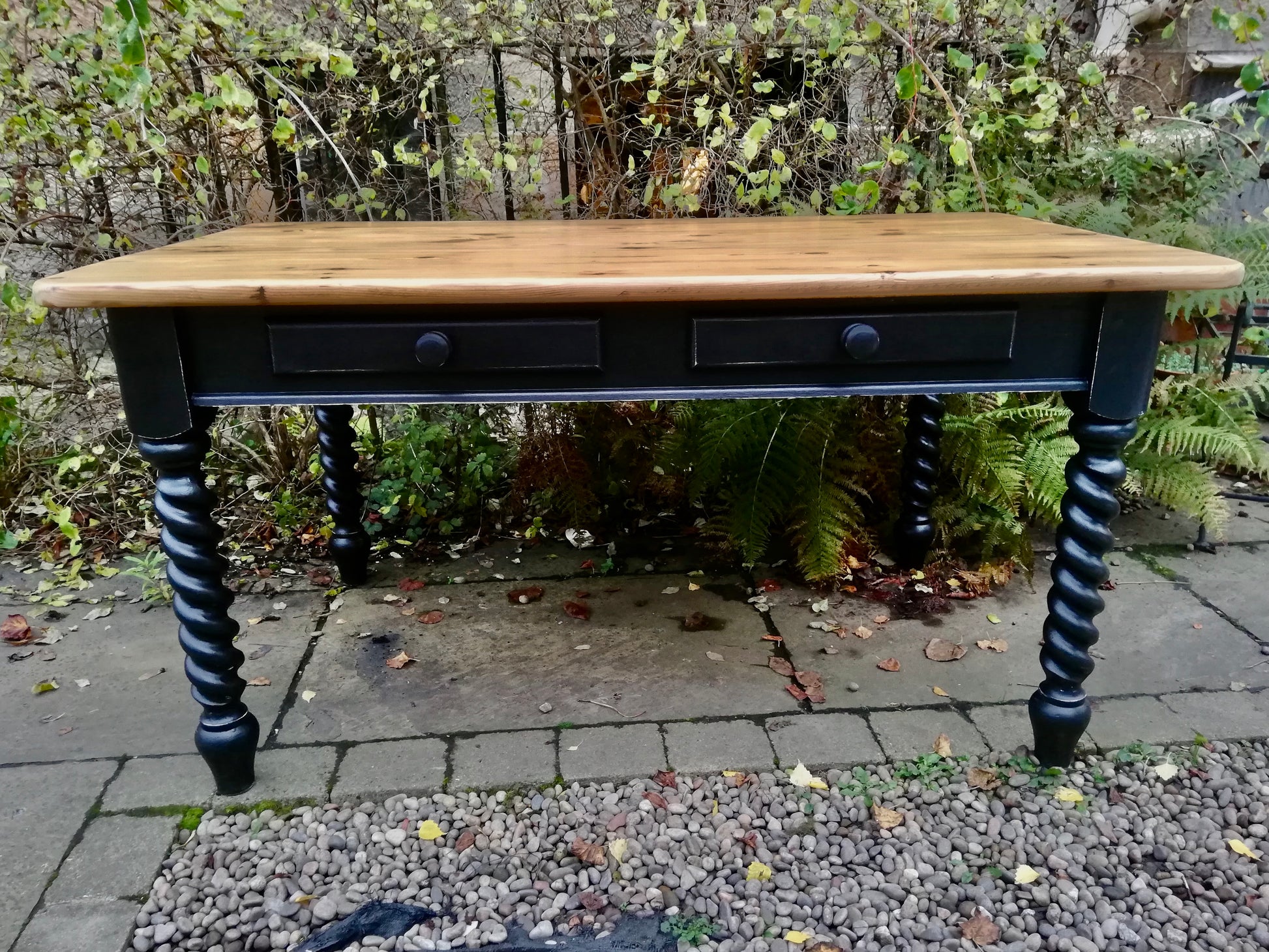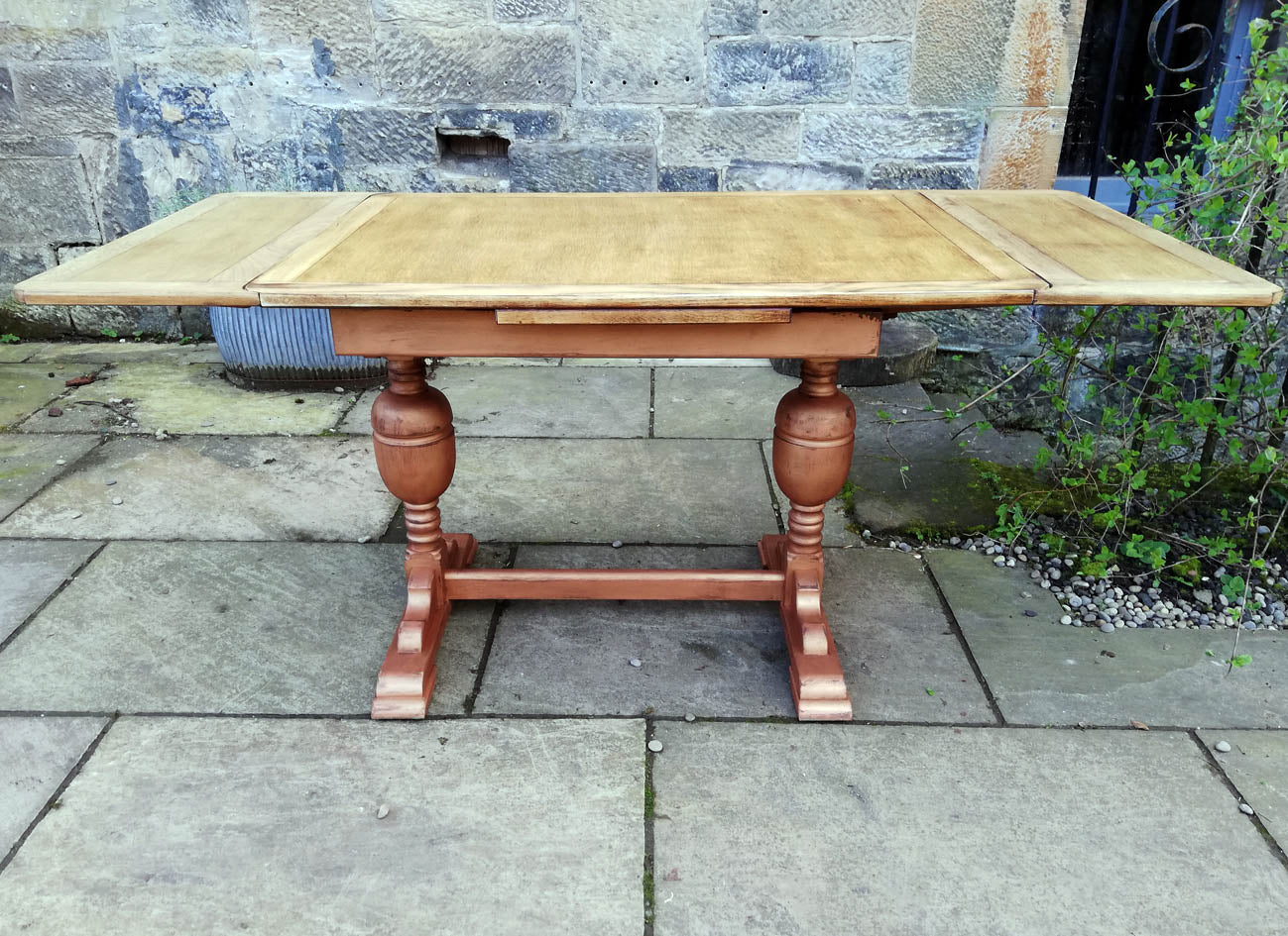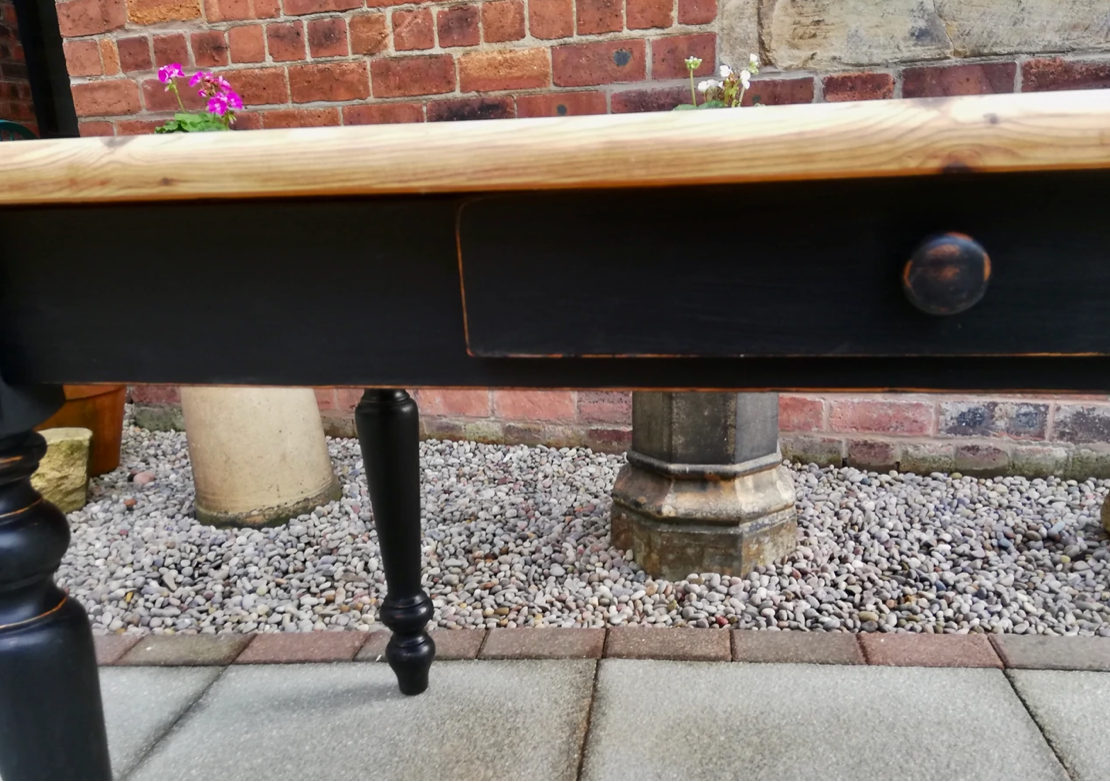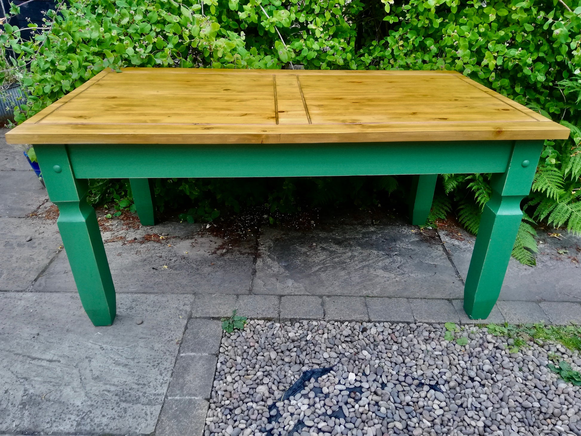 I can wax it, stain it, or limewax it or if you want ultimate protection I can use a tough varnish. I can paint the legs or the whole table ....