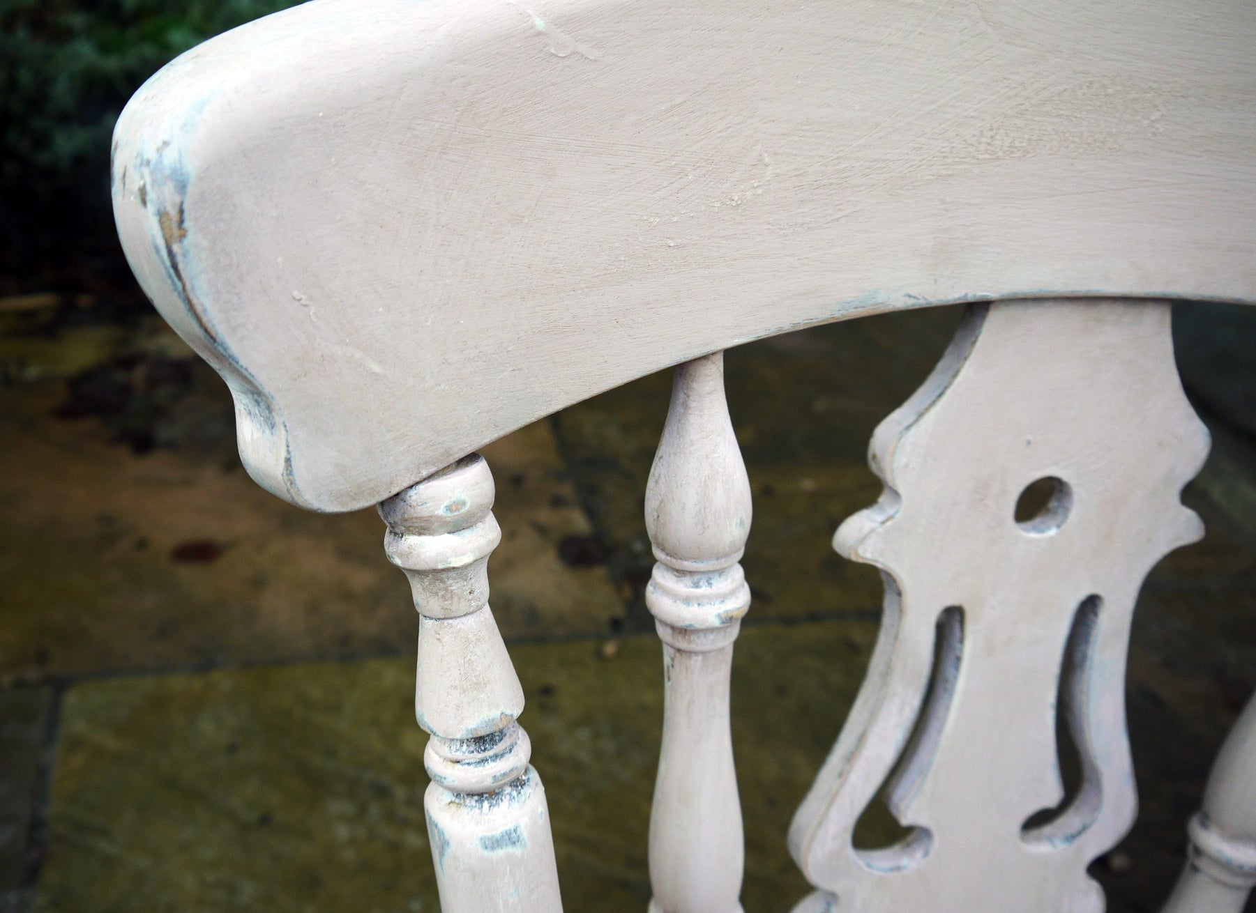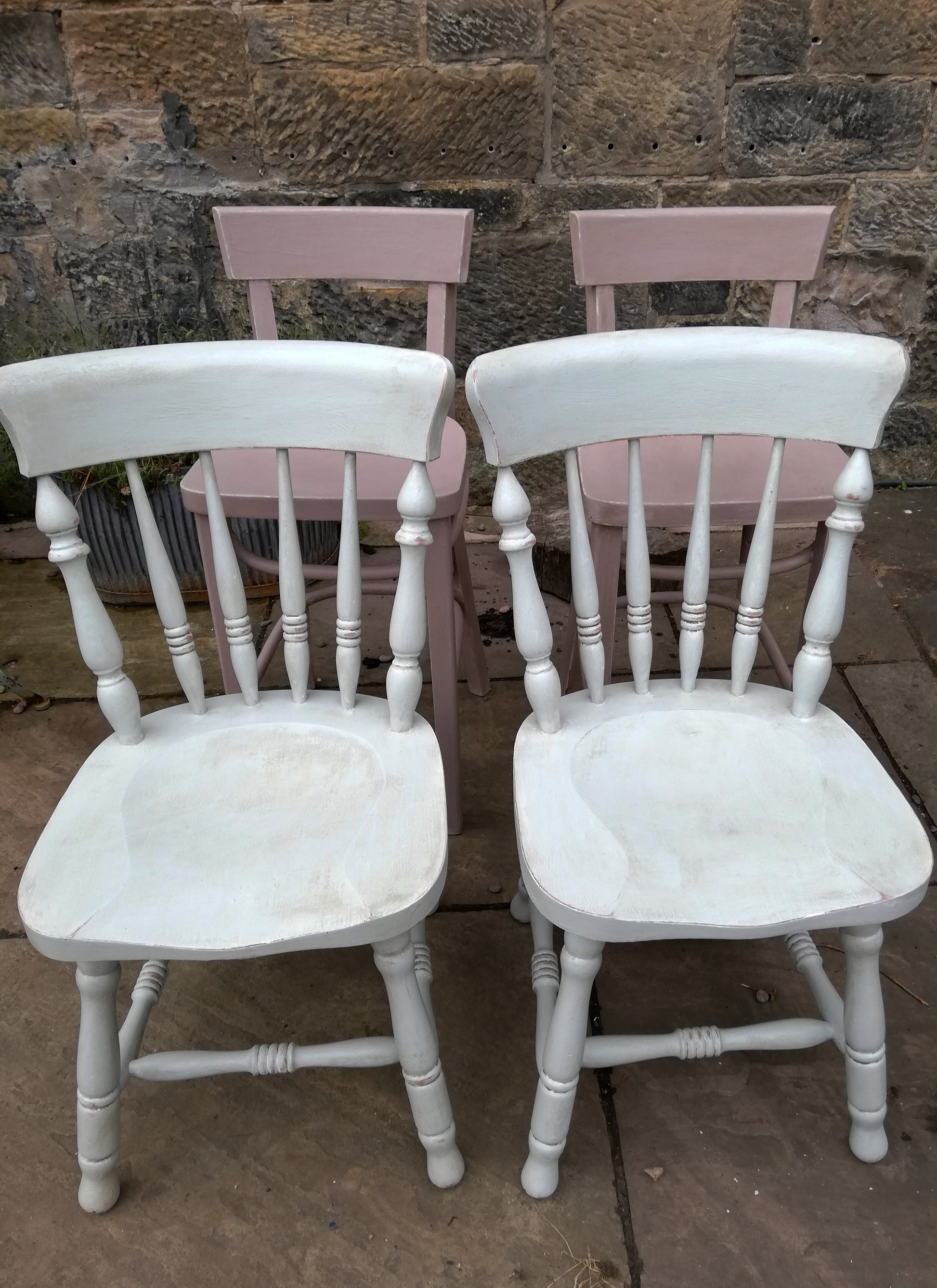 Painted in Annie Sloan Chalk Paint and distressed for a vintage look, please note I only offer a vintage finish in this paint.. Chairs are finished in either clear lacquer or antique waxed to finish for a super vintage look. COLOURS HERE