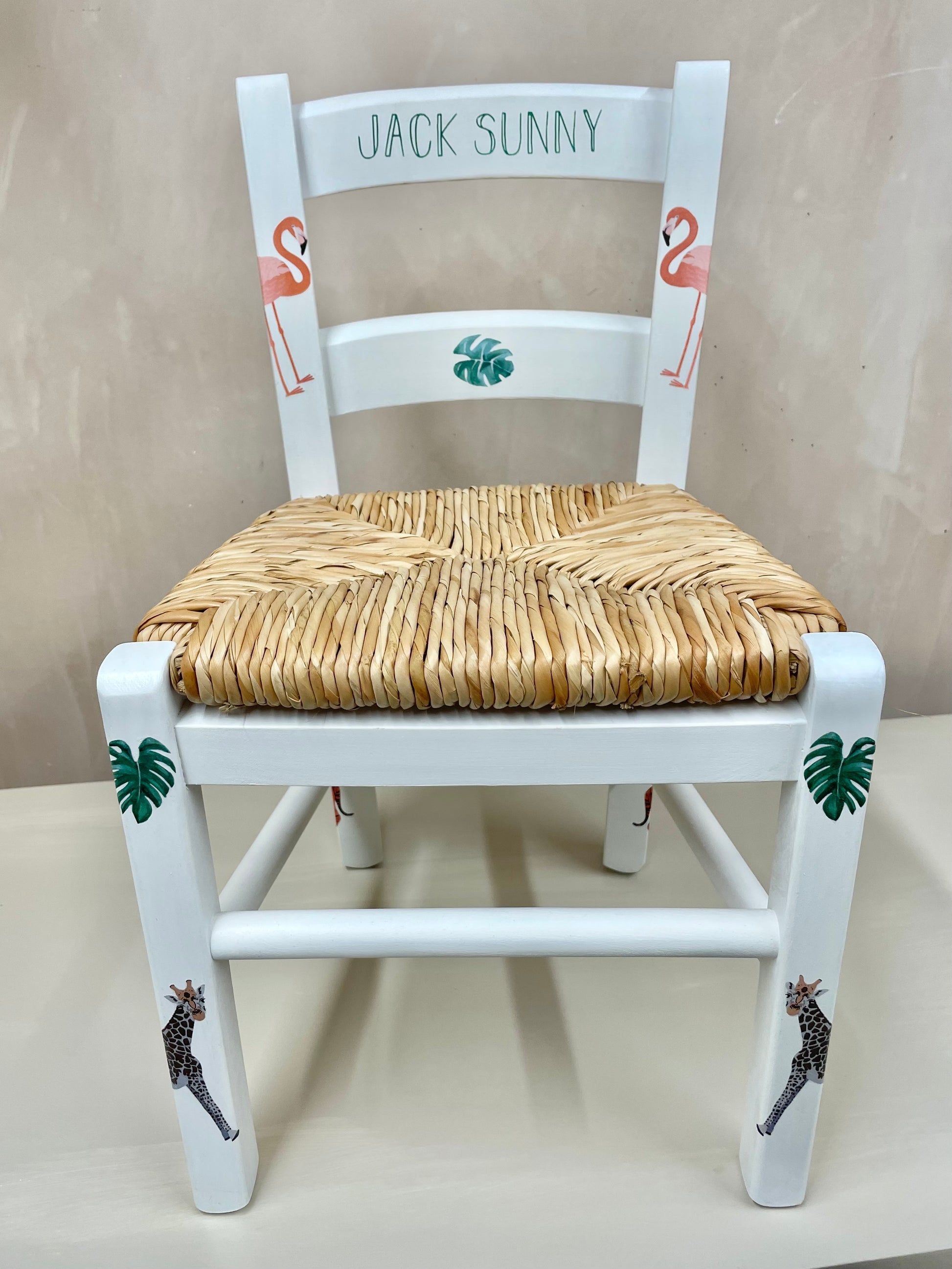 Personalised decoupaged children's chair - Flamingo Friends theme - made to order