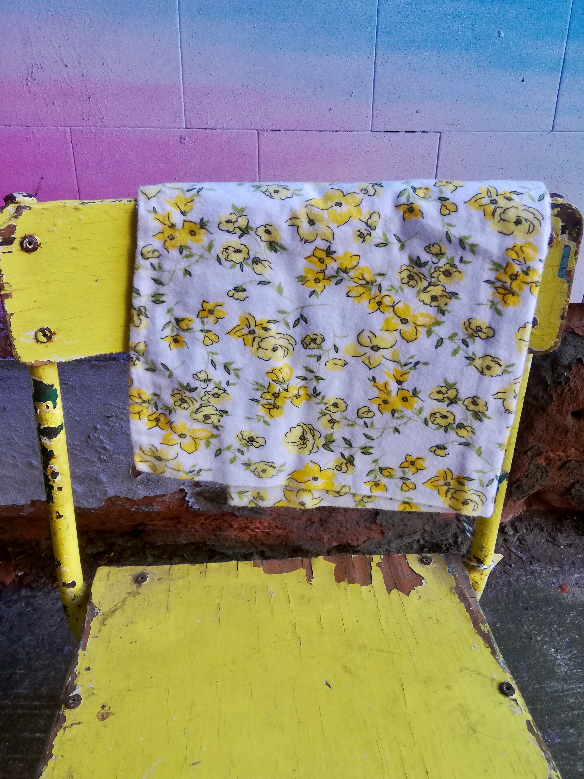 Vintage brushed cotton pillow case with yellow flowers