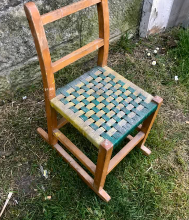 Vintage children's chairs with new macrame woven seat painted in your choice of colour. Painted in child safe eco paint. I use vintage frames which are restored and the old woven rush seats are removed.