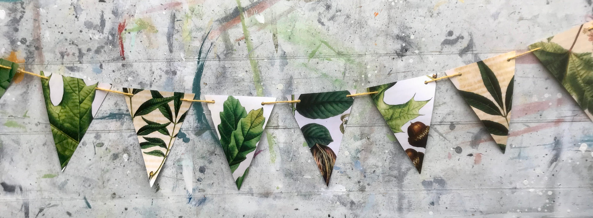 Vintage style botanical bunting garland - vintage leaves illustrations